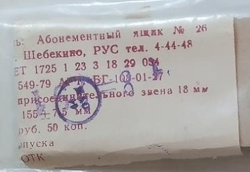 Détail amusant: les hausses de prix étaient extrêmement rares en URSS, les prix étaient imprimés sur les étiquettes, bons de garanties, et même le plus souvent gravés ou moulés sur l’objet. Ce bracelet datant de 1991, les mécanismes de l’économie de marché avaient induit une inflation et, sur l’étiquette de ce bracelet, le prix a été modifié manuellement avant que l’emballage ne soit scellé.
