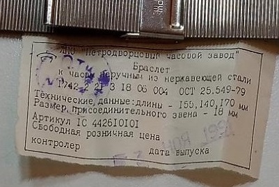 C’est un bracelet classique, pour entre-cornes de 18mm, produit de nombreuses années (ceux-ci en 1991) par la Fabrique de Montres de Petrodvorets.
