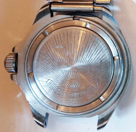 Mentions sur le calibre : logo Vostok (B dans un cercle)