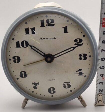 Réveil-matin produit par la Fabrique d’Horloges d’Orel.Marque Yantar Référence: 6973/226065Mécanisme: 6973 à 4 rubisHauteur: 159mmLargeur: 113mmProfondeur: 72mmAnnées ’70