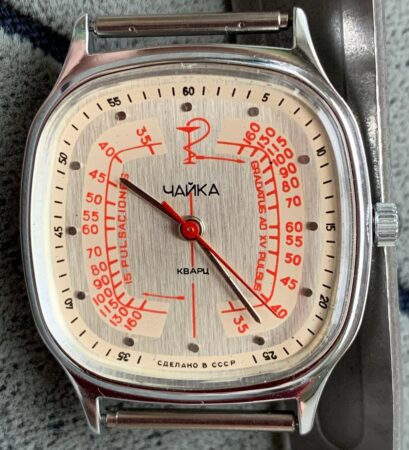 Montre bracelet, à quartz, avec pulsomètre, de marque Чайка, de la Fabrique de Montres d’Ouglitch