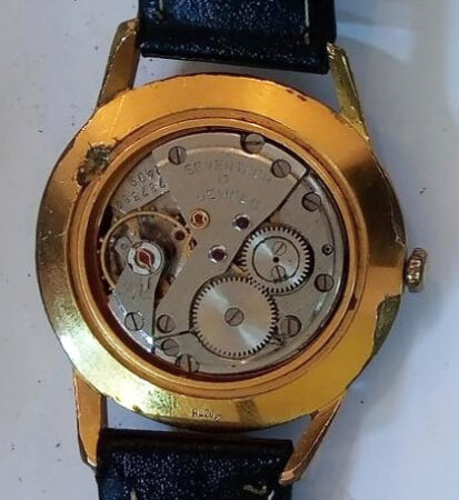 Mentions sur le calibre : SEVETEEN 17 JEWELS sur le pont, 2409 et n° de série (2787380) sur la platine