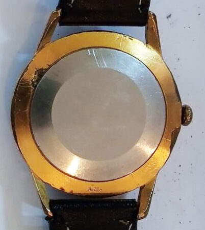 Boîtier de laiton laqué or (poinçon Au20µ sur le dos du boîtier) à fond clipsé
