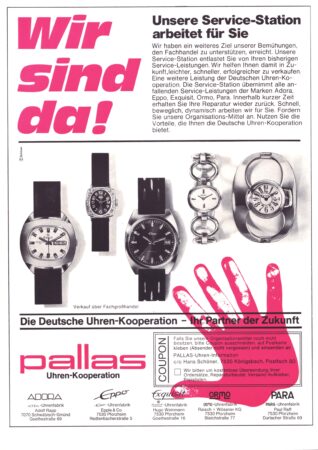 En 1961, l’entreprise a été transformée en société en commandite et en 1971, elle a fusionné avec Pallas Deutsche Uhrencooperation.