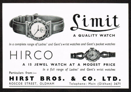 L’entreprise se développe et en 1912, Hirst Brothers dépose le nom de marque « Limit » pour une gamme de montres de poche qui emboitaient un mouvement suisse Revue Thommen. Ces montres connaissent le succès, faisant encore croître l’entreprise. Pendant la Première Guerre mondiale, Hirst Brothers produit des instrument de vol pour l’aviation, tels que des compte-tours et des dispositifs de largage de bombes. Les compétences acquises (et les difficultés à importer comme autrefois des horloges allemandes) amène la société a s’endetter pour produire des mécanismes de montre dans une nouvelle usine, toujours à Oldham.