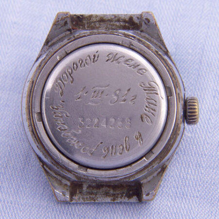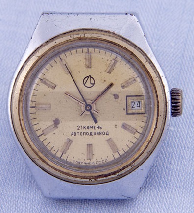 Mentions sur le cadran : 21 камней et АВТОПОД ЧАСОВ (montre automatique) sous l’axe des aiguilles, cделано в cccp (à six heures)