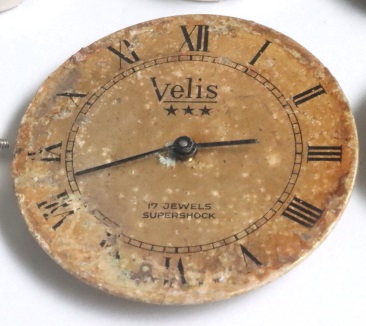 Cette épave est le seul exemplaire connu d’une Velis embarquant un mécanisme soviétique, en l’occurence un Zaria 2009B à 21 rubis et trotteuse centrale de la de la Fabrique de Montres de Penza