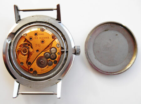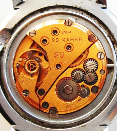 Mécanisme : Luch 2209 à 23 rubis (métal jaune).