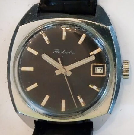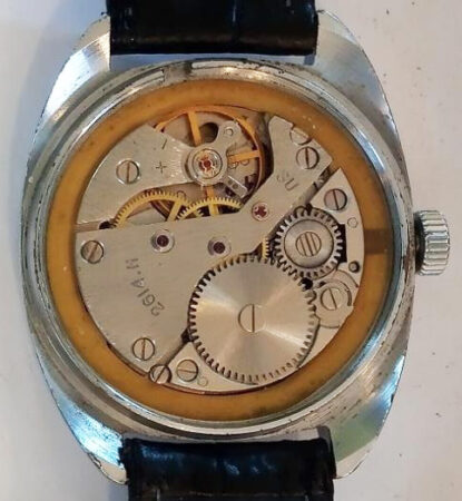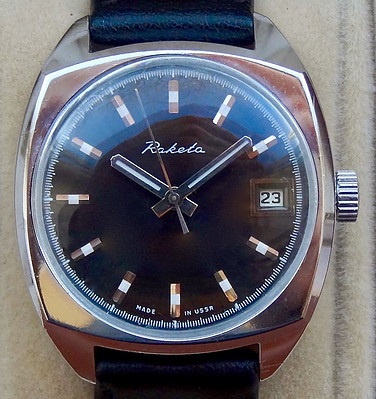 Mentions sur le calibre : 2614.H et SU (Soviet Union) sur le pont, logo raketa (raquette symbolisée) sur la platine.