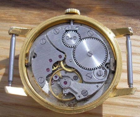 Mentions sur le calibre : ЗИМ 2602 sur la platine, n° de série (32473) sur le pont