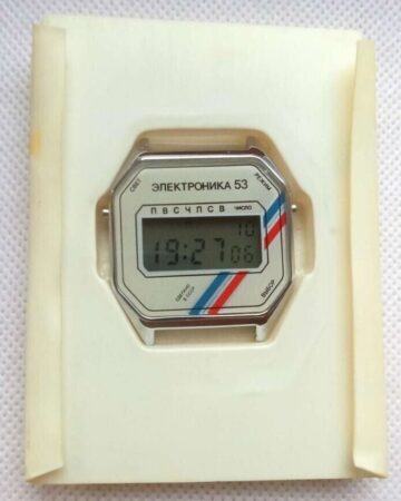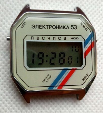 Montre à quartz produite par la Fabrique Elektronika de Minsk du Combinat électronique « Integral »
