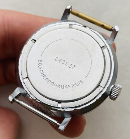 Gravure sur le fond : motif à ligne et n°249937 et Bодонепроницаемые (étanche).