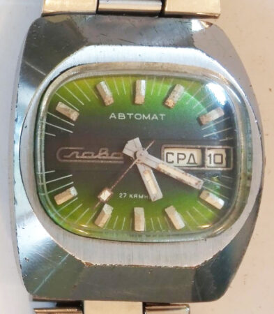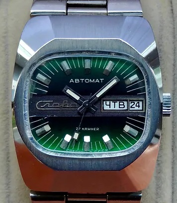 Montre bracelet automatique avec calendrier jour et date, pour l’exportation, de la 2e Fabrique de Montres de Moscou