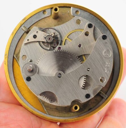 Mouvement 57128H avec le balancier vissé, ressort Bréguet, et échappement à ancre.