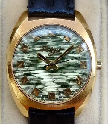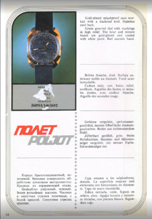 Ce modèle existe avec différents nuance de couleurs de cadran et deux types de boitier: ici au catalogue Poljot 1977 avec le boîtier 1463: