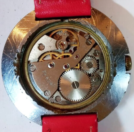 Mentions sur le calibre : n° de série (10492) et logo Raketa sur la platine, SU (pour Soviet Union) et 2609.HA sur le pont.