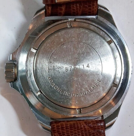 Mentions sur le calibre : logo Vostok (B dans un cercle)