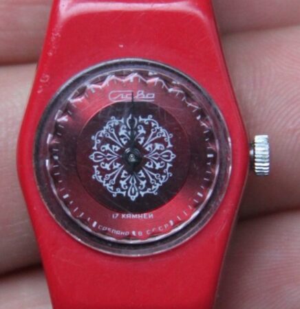 Montre bracelet pour femme avec bracelet plastique incorporé de la 2e Fabrique de Montres de Moscou