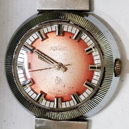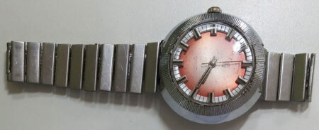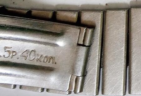 Bracelet métallique soviétique à boucle déployante du 1er logo de la Fabrique Пульт (Pult) de Chebekino,