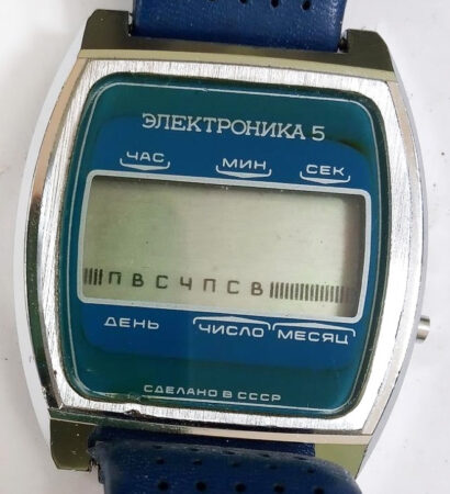 Montre à quartz et LCD (écran à cristaux liquides) du Combinat électronique « Integral », à Minsk