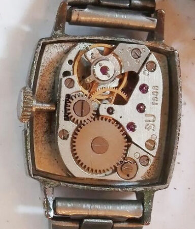 Mentions sur le calibre : SU et 1800 sur un pont, logo Luch sur la platine
