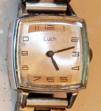 Avec un bracelet métallique soviétique à fermeture à boucle.