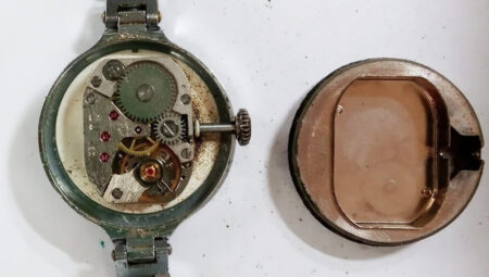 Boîtier-bracelet articulé de laiton chromé à fond clipsé