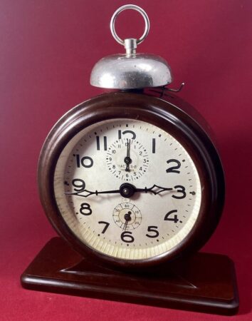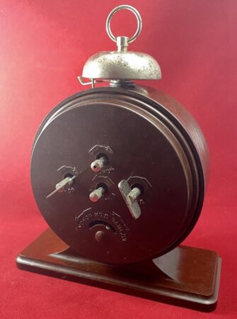 Réveil-matin de la Fabrique d’Horloges d’Orel.Sans marque, avec le logo de la fabriqueMécanisme: B6Norme GOST: 3145-57Date de fabrication: 4e trimestre 1958Dimensions:Hauteur: 165mmLargeur: 112mmProfondeur: 75mm