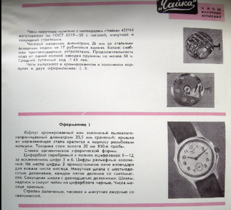 Mécanisme : « Tchaïka » ЧH-451 à 17 rubis
