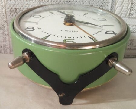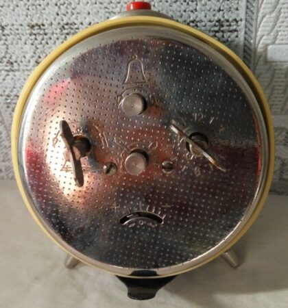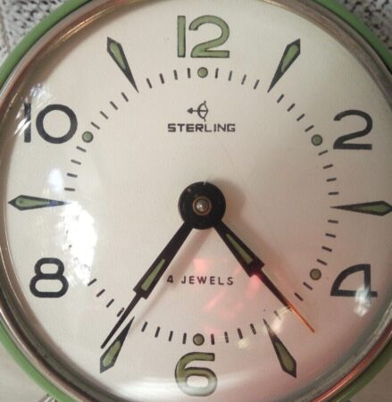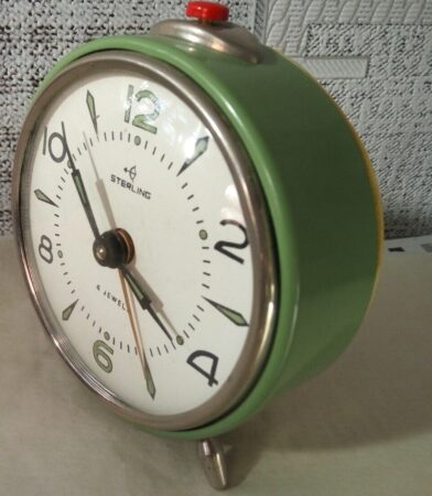 Réveil de marque « Sterling » (en fait un Vitiaz pour l’exportation) de la Fabrique horlogère de Rostov.Mécanisme 6373 à 4 rubisDiamètre: 94mmHauteur: 108mmPoids: 338gr