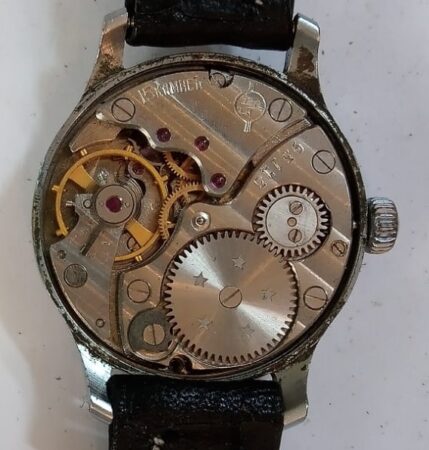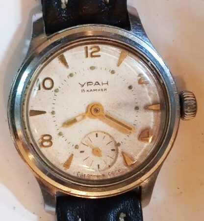 Variante de ce modèle parce qu’avec avec d’autres mentions sur le cadran : 15 камней sous la marque cделано в cccp (fabriqué en URSS, à six heures)