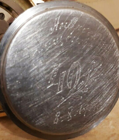 Gravure sur le fond : Gravure manuelle « лавли андреевич грущенко 40л » (montre offerte pour le 40e anniversaire de Lavli Andréevich Grouchenko), perlage à l’intérieur