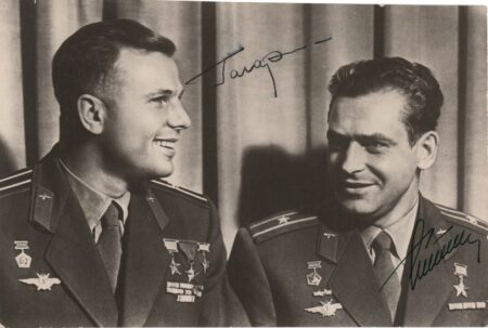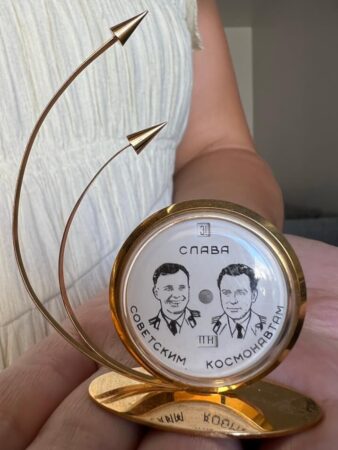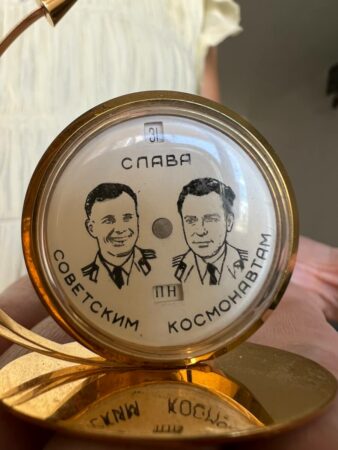 Calendographe de la 1ère Fabrique de Montres de Moscou en l’honneur de la conquête spatiale soviétique, avec les deux célèbres premiers cosmonautes soviétiques, Youri Gagarine et Guerman Titov.