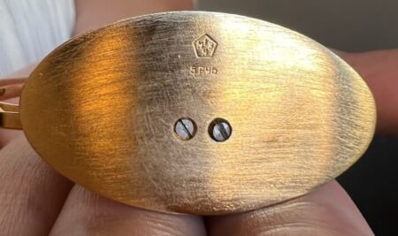 Sur le fond: le premier logo (pentagonal) de la fabrique, ainsi que le prix: 5 roubles