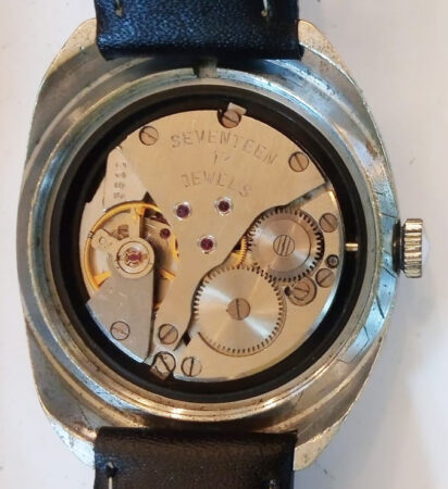 Mentions sur le calibre : SEVENTEEN 17 JEWELS sur un pont, N° de série sur la paltine.