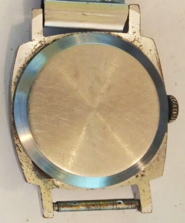 Bracelet métallique, soviétique, fixations à pinces estampé d’un logo et de Ц2P ( prix 2 roubles).