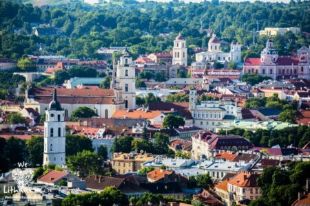 Le cadran, sur dimensionné, représente les tours de la vieille ville de Vilnius: