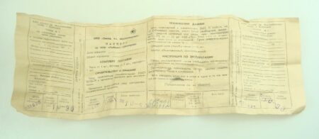 Un exemplaire du même modèle avec une indication de la taille et son passeport de 1990: