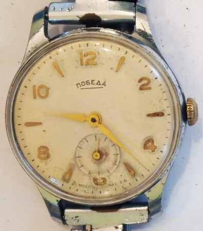 Avec un bracelet vintage (mais bien postérieur à la montre) soviétique