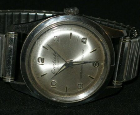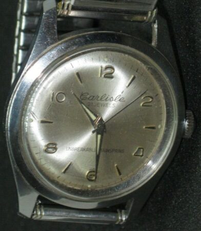 Cette Carlisle emboite un calibre 2409 de la 1ère Fabrique de Montres de Moscou.On ne sait rien de certain sur cette marque destinée au marché américain.