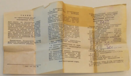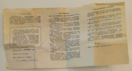 État neuf avec document et boîte en carton d’origine (en carton rouge portant le logo doré de la firme : les initiales ЗЧЗ dans un triangle) ; la boîte est usée.