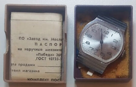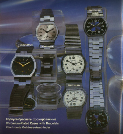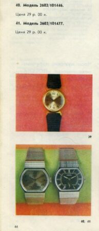 Au catalogue Pobeda 1987 : le boîtier et le cadran (sur deux montres différentes) :