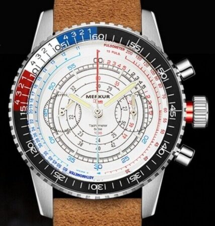 Les Merkur emboitent généralement des mécanismes chinois, comme ce chronographe emboîtant un Seagull ST2901:
