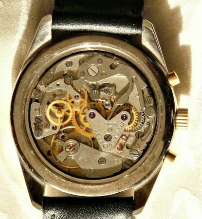 Ce modèle de cette gamme emboîte un calibre soviétique (le Poljot 3133 de la 1ère Fabrique de Montres de Moscou) dont le n° de série à quatre chiffres indique une production d’avant 1989.