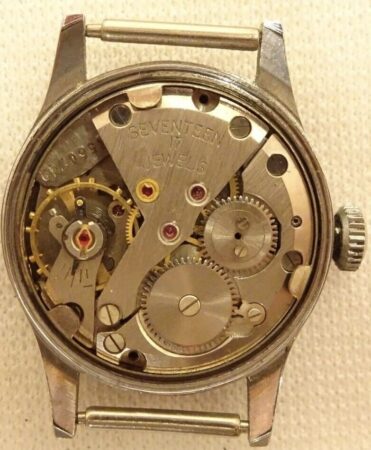 Il manque la trotteuse sur cet exemplaire et l’aiguille des heures est cassée