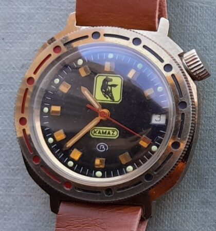 Montre bracelet, mécanique, à simple tantième, étanche de la Fabrique de Montre de Tchistopol avec motif de la fabrique automobile KamAZ