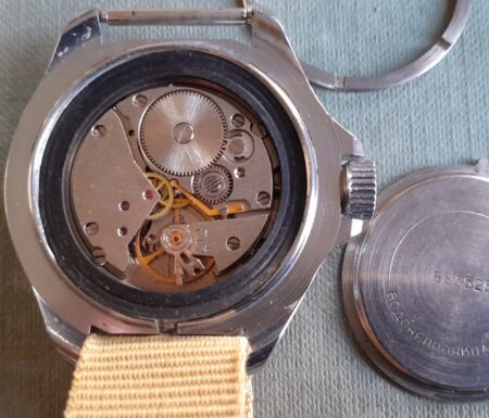 Mentions sur le calibre : logo Vostok (B dans un cercle)