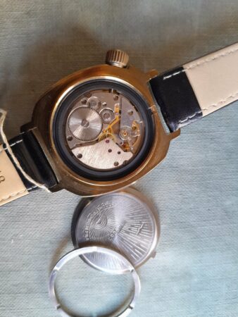 Mentions sur le calibre : logo Vostok (B dans un cercle)