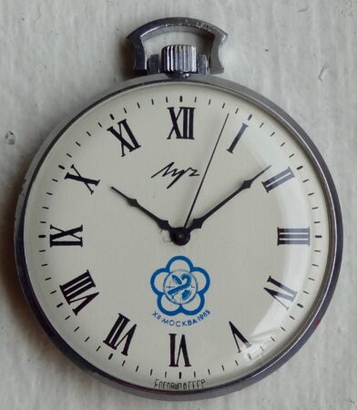 Le cadran porte le symbole du Festival mondial de la jeunesse de 1985 (pour en savoir plus sur ce motif):