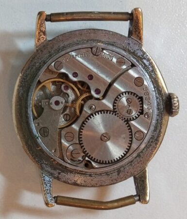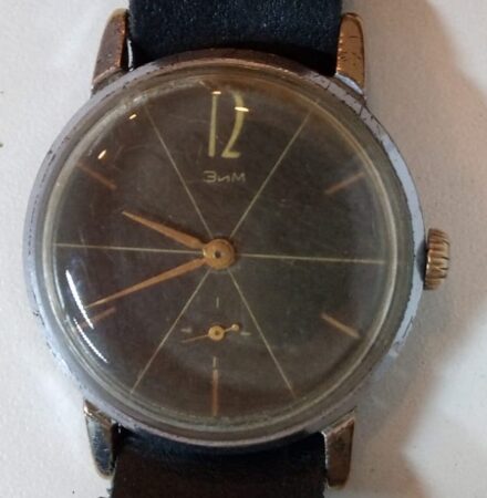 Mentions sur le calibre : ЗИМ et 15 камня (15 rubis) sur un pont, n° de série (98343) sur un autre, 2602 sur la platine. Côtes de Genève